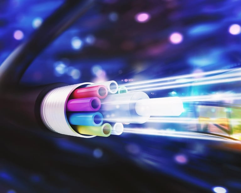 Fiber optic internet delivers data through light signals sent over thin glass or plastic fibers, providing Ultra-fast speeds, low latency, and a more reliable connection than a traditional cable or DSL.